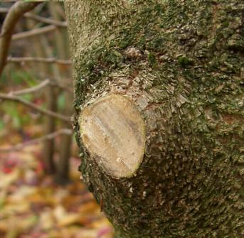 Cut back to the natural 'collar' which will grow over the wound to seal it.